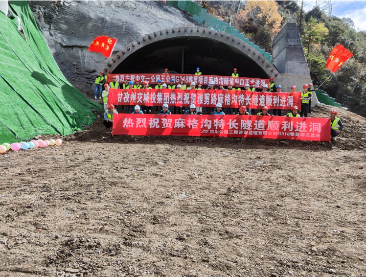 近日,中交一公局第五工程有限公司承建的四川G318提质改造工程雅剪段TJ标项目麻格沟特长隧道出口进洞施工,标志着项目控制性工程麻格沟隧道正式进入洞身主体施工阶段。
