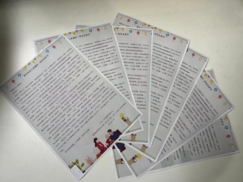 活动期间,项目负责人宣读《致员工家属书》,并播放安全事故警示视频,学习和宣贯安全基础知识,使得职工家属们更能直观的感受到“安全无小事”。活动以职工家属寄语收尾,丝丝话语,暖入心间。
