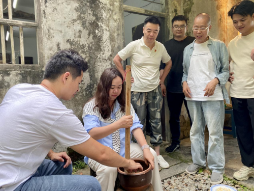 捐赠仪式结束后,访问团一行探访了风景如画的先河村琴江秘境,参观百万年前的自然风貌——原始神秘远古冰川遗迹石臼群,考察了客乡村建保护案例,进行乡村振兴茶旅园深度体验,并观看中超联赛——梅州客家队与上海海港队的精彩比赛,并拜访瞭望山·舍丨文化工作室,与负责人古志浩、温燕青、邹畅根等杰出青年们就乡村振兴议题深入交流。