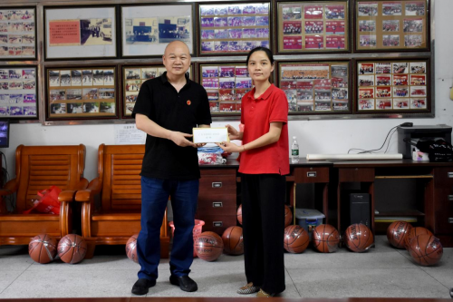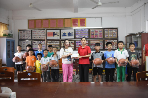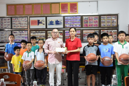 在仪式上,协会领导向校方转交了一批篮球物资、绘画工具及剩余捐款19350元。
