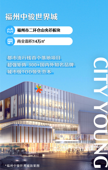 福州中骏世界城位于福州二环仓山央芯板块,总建筑体量超45万方,商业面积超14万方,集两条地铁线交汇,核心辐射常住人口超100万。项目定位为“城市TOD新潮活力中心”,将打造城市级TOD领先范本,成为福州2023年最具期待开业项目。