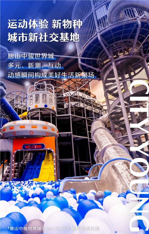 唐山中骏世界城重新定义社交、场景、体验的新空间形态,创新提出“运动健身+娱乐社交+潮流零售”复合式形态,打造全方位的运动体验组群,包括运动健身-拥有唐山唯一购物中心室内游泳馆的星驰游泳健身中心,运动娱乐-首进唐山超2100㎡、17米挑高Super Rabbit 室内运动公园,运动零售-Nike、adidas、安踏、特步、361°等一线品牌,运动社交-室外多功能运动公园。满足Z世代年轻人的多元消费需求,打开年轻消费新次元。