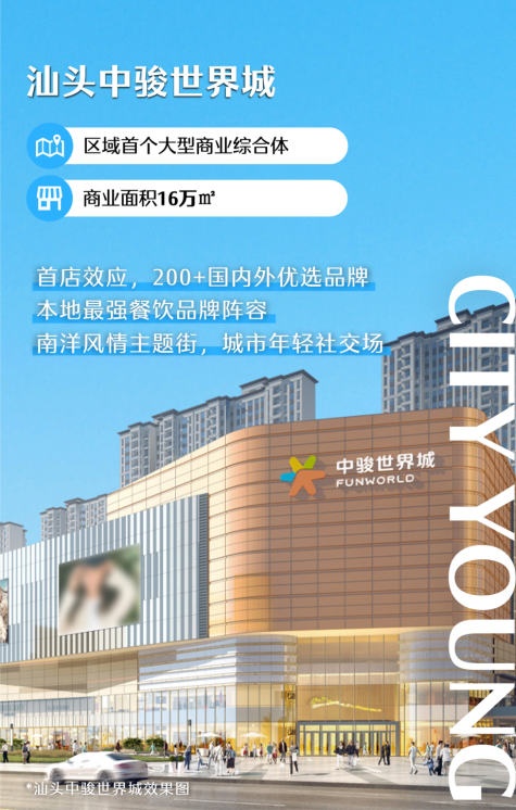 作为中骏商管布局广东第二座商业综合体,也是汕头澄海区首个大型商业综合体,汕头中骏世界城以总建筑面积超60万㎡、商业面积16万㎡填补区域商业空白。