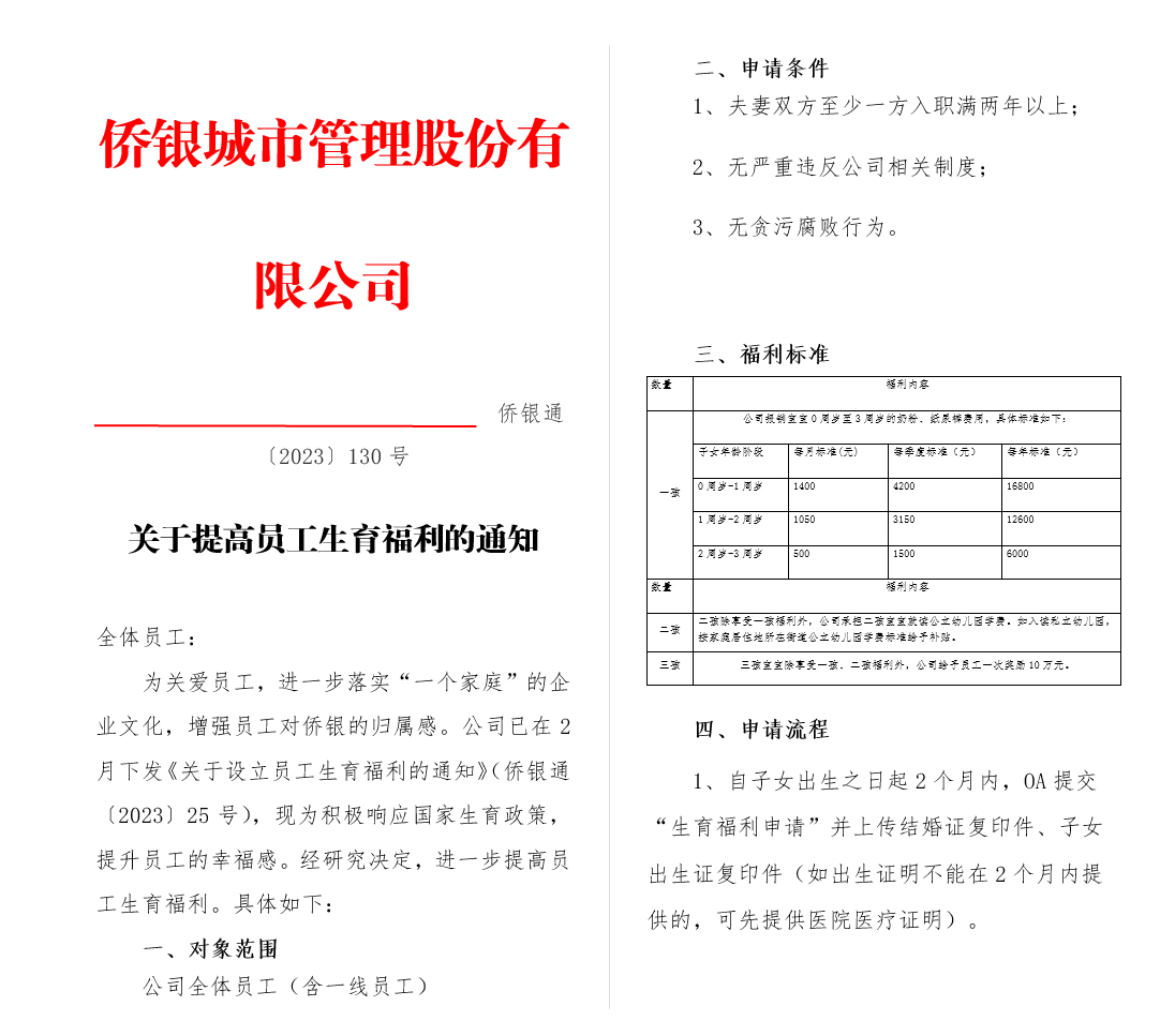 生三孩累计奖励超25万元,覆盖侨银股份全体员工