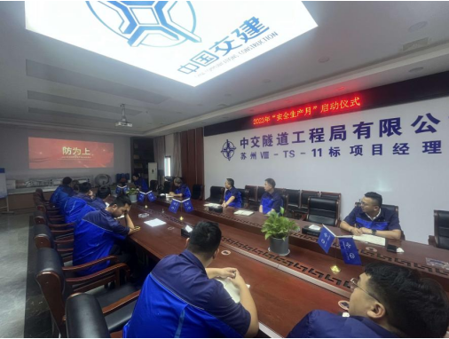 6月2日,中交隧道工程局有限公司苏州地铁Ⅷ-TS-11标组织开展了“安全生产月”活动启动仪式签名、宣誓活动。安全总监对安全月活动方案进行了宣贯,对项目安全月活动进行部署,并组织参会人员观看安全生产月宣传专题片《防为上》。