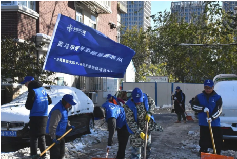 持续推进“党建带团建”工作的开展,与河西区马场街街道社区建立长效沟通机制。多次组织“蓝马甲”志愿者服务队队员参与河西区的创文创卫活动。2021年11月,天津强降雪对多个小区出行造成极大影响,项目团支部迅速组织20余名志愿者,冒着刺骨寒风在社区清理出一条条“安全通道”。此外,多次组织志愿者支援天津市方舱建设、市内多个隔离点的准备工作,协助项目所属街道疫苗接种志愿服务,社区楼道地面坑洞修补、污水管疏通等工作均圆满完成,拉近了项目部与属地群众之间的关系,营造了良好的外部环境,展现了企业责任和社会担当。