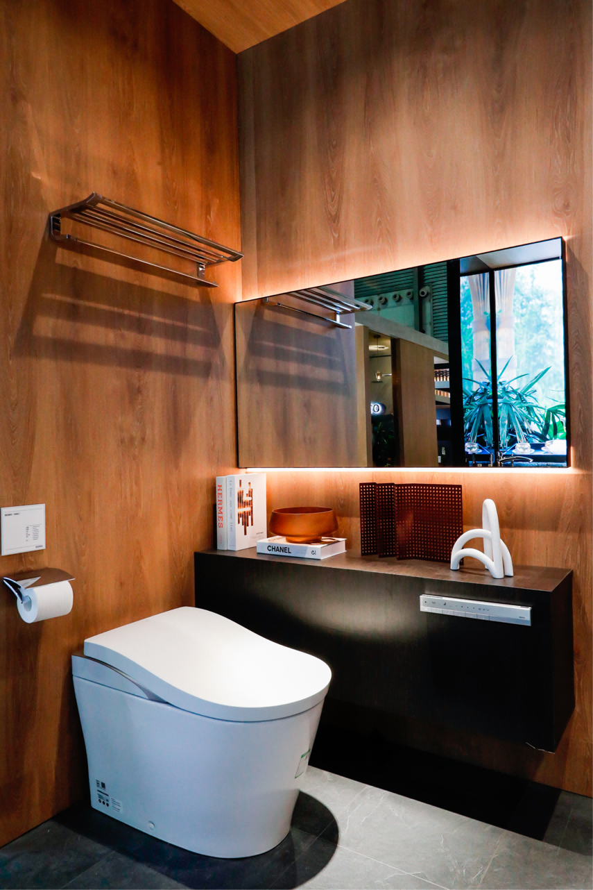 时至今日,卫洗丽®产品的更新迭代,也从未停止。本届展会,TOTO展出了新款智能一体型坐便器卫洗丽® G5A,温柔感的圆润设计、流水性线条,给整个空间平添了一份优雅。同时TOTO“智能洁净系统”的搭载,更是提供了全方位的清洁保障。