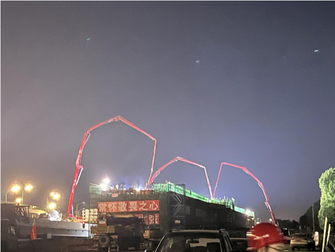 作为标段内一次性不间断浇筑量最大的施工任务,项目团队强化施工组织、合理调配资源、制定一系列保障措施及应急预案。浇筑过程中,项目领导班子深扎一线,全方位管控,采用项目管理人员“三班倒”、队伍“两组两班”的轮值作业模式全程盯控,在确保安全、质量的情况下顺利完成现浇梁施工任务。