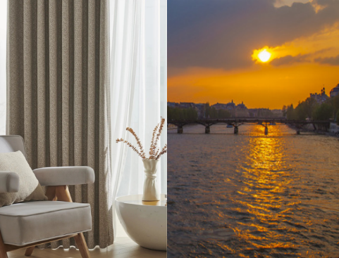 爱漫时睡眠窗帘《塞纳日落》将巴黎塞纳河的日落风情展现得淋漓尽致。窗帘整体以日落十分的黄褐色为主要色调,表面上的点点细腻纹路仿佛日落下波光粼粼的河面,随着水风吹拂和船只往来破碎又聚拢,充满浪漫风情。窗帘同时融合皮绳材质,以简洁的造型,呈现摩登气质,在雅与奢之间,流露不羁个性。