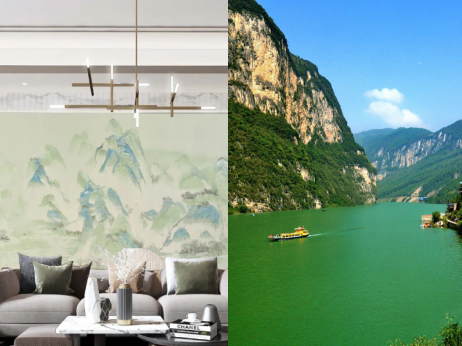爱漫时独绣系列墙布《千里江山》采用中华传统苏绣工艺,针法灵活多变,针脚整齐,将华夏大地的秀美山川以传统水墨画的形式绣于墙布之上。画面上峰峦起伏绵延,江河烟波浩渺,面对这样一副荡气回肠的山水之作,观者仿佛身临其境游走于巴渝之地的山川流水之间,体会文化历史带来的共振,一扫心中郁结,豁然开朗,在壮阔的高山流水中寻得心灵的平静与松弛。