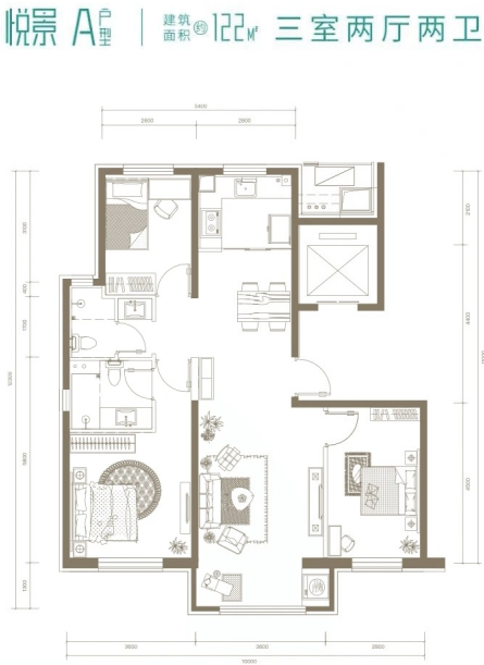 (中绿东岳府建筑面积约122平米户型图)