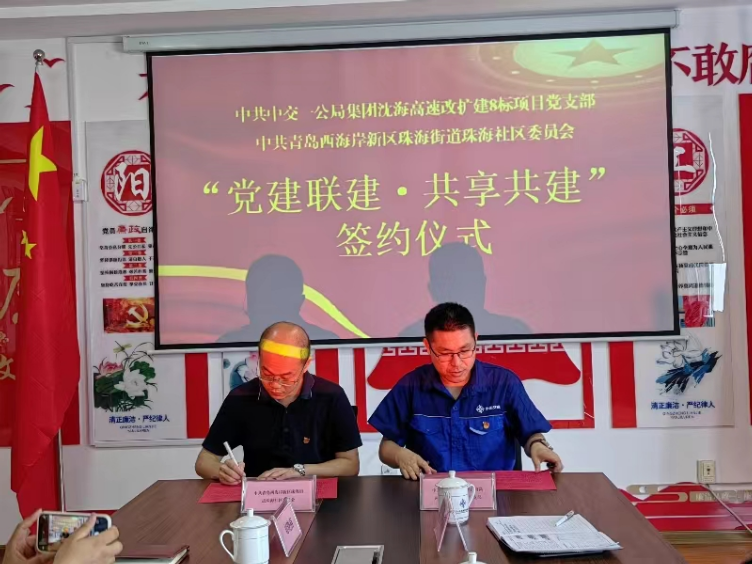 近日,中交一公局集团沈海高速项目ZT8标段党支部与青岛西海岸新区珠海街道珠海社区委员会在项目党员活动室中举行“党建联建·共享共建”主题签约活动。