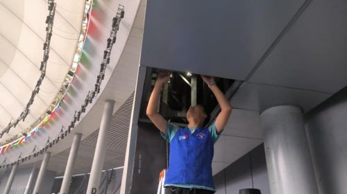 夏季不光意味着炎炎高温,也意味着高降雨量,对于负责场馆给排水维保工作的李仁杰而言,场馆里每一台水泵、每一个阀门部件,都是他重点关注的对象,及时更换故障部件、保证场馆给水排水通畅,随时做好应对暴雨天气的准备。保赛的机电工程师们奔走在场馆内部,听得见开幕式彩排时律动欢腾的音乐,却只专注于眼前机器指示灯的闪烁跳动,曾经热火朝天的建设景象与如今热烈雀跃的备赛景象在他们脑中相交重叠,形成专属于他们的难忘的赛事记忆。