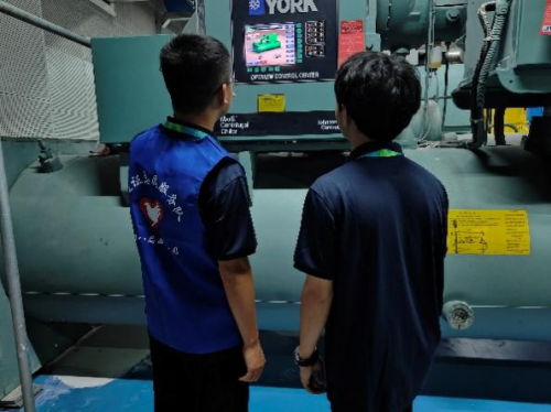 作为空调保赛小组的成员,肖景泓提前一周驻场,从主机到末端,逐个检查设备运行是否正常,并通过智慧楼宇控制系统对空调末端、循环水泵、冷却塔及冷水机组等设备运行参数进行管理监测。在现场也常常能看到他监督巡查、排查故障的身影。对于肖景泓来说,这些设备早已非常熟悉,这些工作更是得心应手,但是他依旧兢兢业业完成规定任务,用一丝不苟的态度保障赛事期间场馆空调系统平稳运行。