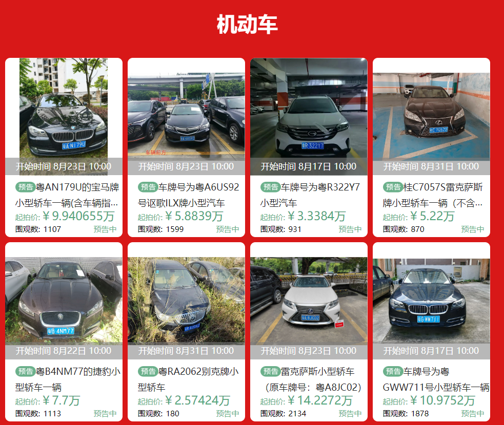 此次广湛清法拍节活动将持续至11月15日,除以上土地、房产、股权、机动车等标的上线外,更多字画、手表、酒水等优质拍品也将陆续上线京东拍卖,感兴趣的朋友请持续锁定广湛清法拍节,捡漏心仪拍品吧!