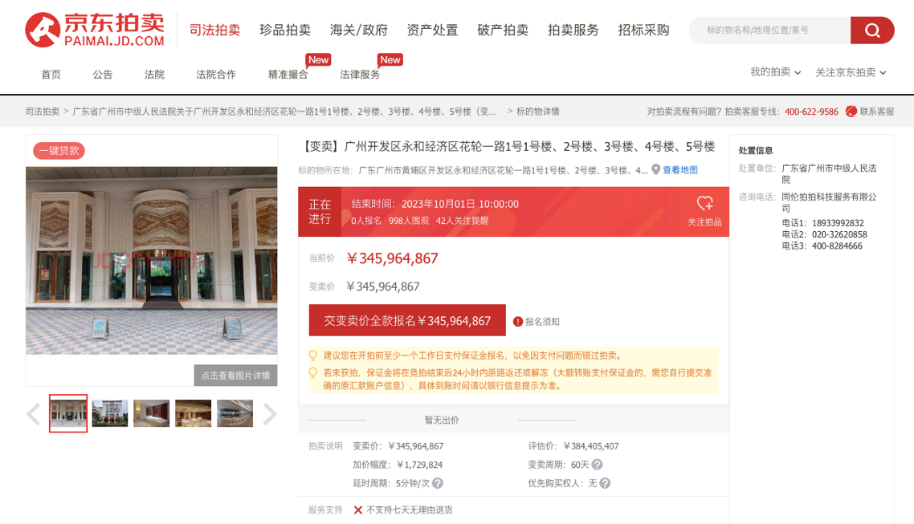为进一步提高司法执行资产处置效率,充分发挥网络司法拍卖平台优势,探索司法拍卖的新路径,由广州中院、湛江中院、清远中院联动三地近30家法院在京东拍卖举行的“广湛清法拍节”活动8月15日火热开启。首批上拍711件拍品,不仅有百余套位于核心地段的优质住宅7折起拍,还有商铺车位、土地、机动车以及股权等多类拍品,总价值超12亿元。为了更好地保障竞买人参拍体验,京东拍卖发挥多元化服务优势,为竞买人提供京拍保、法拍贷、大额配资等一站式、全流程资产处置服务等,推动资产高效成交,为当地营商环境优化贡献力量。