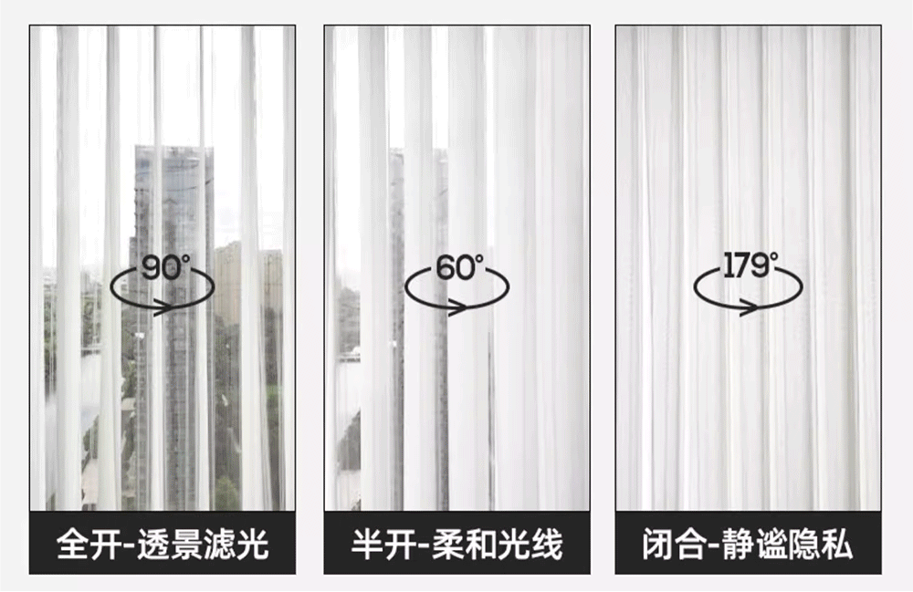 爱漫时智能梦幻帘通过三种开合方式塑造绝美光影效果。第一种全开模式,透景漏光,室内可以轻松欣赏到室外景色,室外光线也可以完全透入,在日落时分打开全开模式可以欣赏窗外日落美景,斜照的阳光将室内染成一片金黄,打造绝美落日氛围。第二种半开模式,将光线柔和自然地引进室内,在阻挡强烈光线的同时保证视野清晰,适合下午阳光强烈刺眼的时段,手捧一壶茗茶,小睡休憩一番,在这里度过慵懒休闲的下午茶时光。第三种是闭合模式,静谧隐私,梦幻帘完全闭合时可以隔绝室外景色,建立起一个密闭安全、能够集中注意力、不被打扰的隐私空间,适合夜晚休息放松的时段,可以不受打扰地放松休息或者处理事务。
