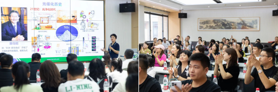 在雅琪诺秋季新品预鉴会上,与会门店代表走进浙江理工大学,深入探访耐酷时技术诞生基地。耐酷时技术发明人王騊教授对耐酷时技术近20年来的科学发现、技术发明、工艺创造与市场应用的心路历程进行了介绍,同时,耐酷时技术应用负责人贺男老师更为深入地讲解了耐酷时技术的作用原理,让与会人员对雅琪诺耐酷时抗菌除醛系列产品有了更为清晰的认知。