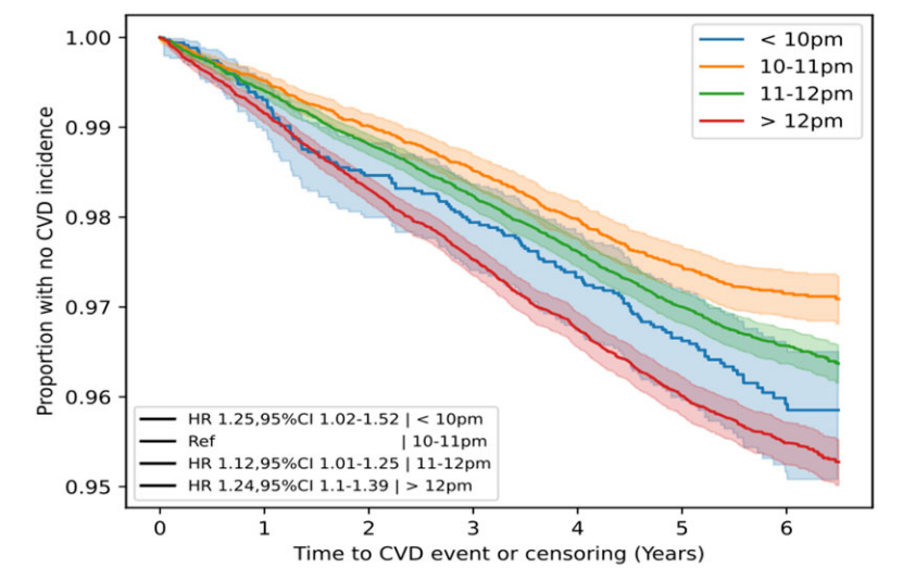 睡眠问题一直受到全世界人们的关注。《美国医学会杂志》中一项针对部分亚洲国家成年人睡眠时间的调查研究显示,7 小时是与心血管疾病等死亡原因相关度最低的“最佳睡眠时间”,持续性的睡眠不足或者睡眠过多都会导致死亡率升高。英国牛津大学等研究人员在《欧洲心脏杂志数字健康》上发表了一篇研究显示,晚上10:00~10:59是最合适的入睡时间节点,此时入睡可以降低患心脏病的风险,而在午夜或更晚入睡的人风险较之要高25%。