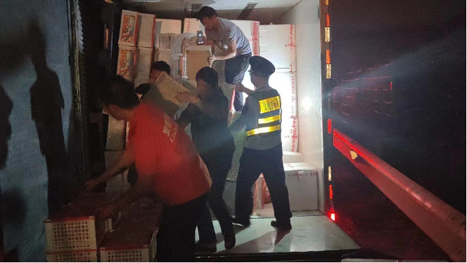 24日凌晨0许时,盘货车辆到达后,执法人员立即协助将厢式货车内的冬枣和蔬菜转移至盘货车上,于1点半完成盘货、并马上运往漳州,最大程度保证蔬菜水果的新鲜完好,确保赶得上早市,努力减少货主经济损失;与此同时,另一组人员也在抓紧清理袋装海藻。在完成货物转运后,清障员将两车吊正,并于5时许安全拖离,执法人员同步完成路损勘验,现场最终恢复正常通行。