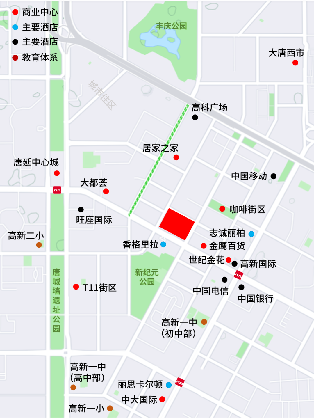 比如酒店,片区云集了香格里拉、丽思卡尔顿、中晶华邑和即将筹开的高新JW万豪等;商业方面,中大国际、世纪金花、金鹰百货、大都荟和T11 Block;学校方面,分布着高校一小、二小和高新一中等。