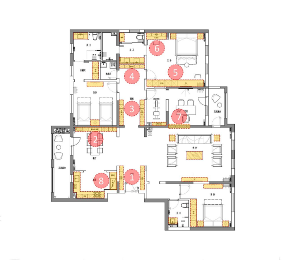 该项目位于北京,套内面积230.93㎡,常住人口6人,男女主人及双方父母。由于居住人口较多,因此居住者对于房屋收纳有严格要求。北京国标建筑科技有限责任公司(以下简称“国标建科”)根据居住者需求,合理设计全屋收纳空间,玄关、走廊利用最大化;书房、衣帽间整合利用;收纳规划最大化。