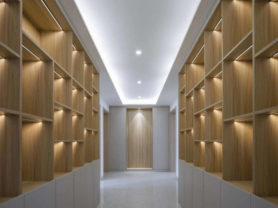 收纳三:走廊设置两排矮柜,柜内可存放业主自己的书画作品及藏品。
