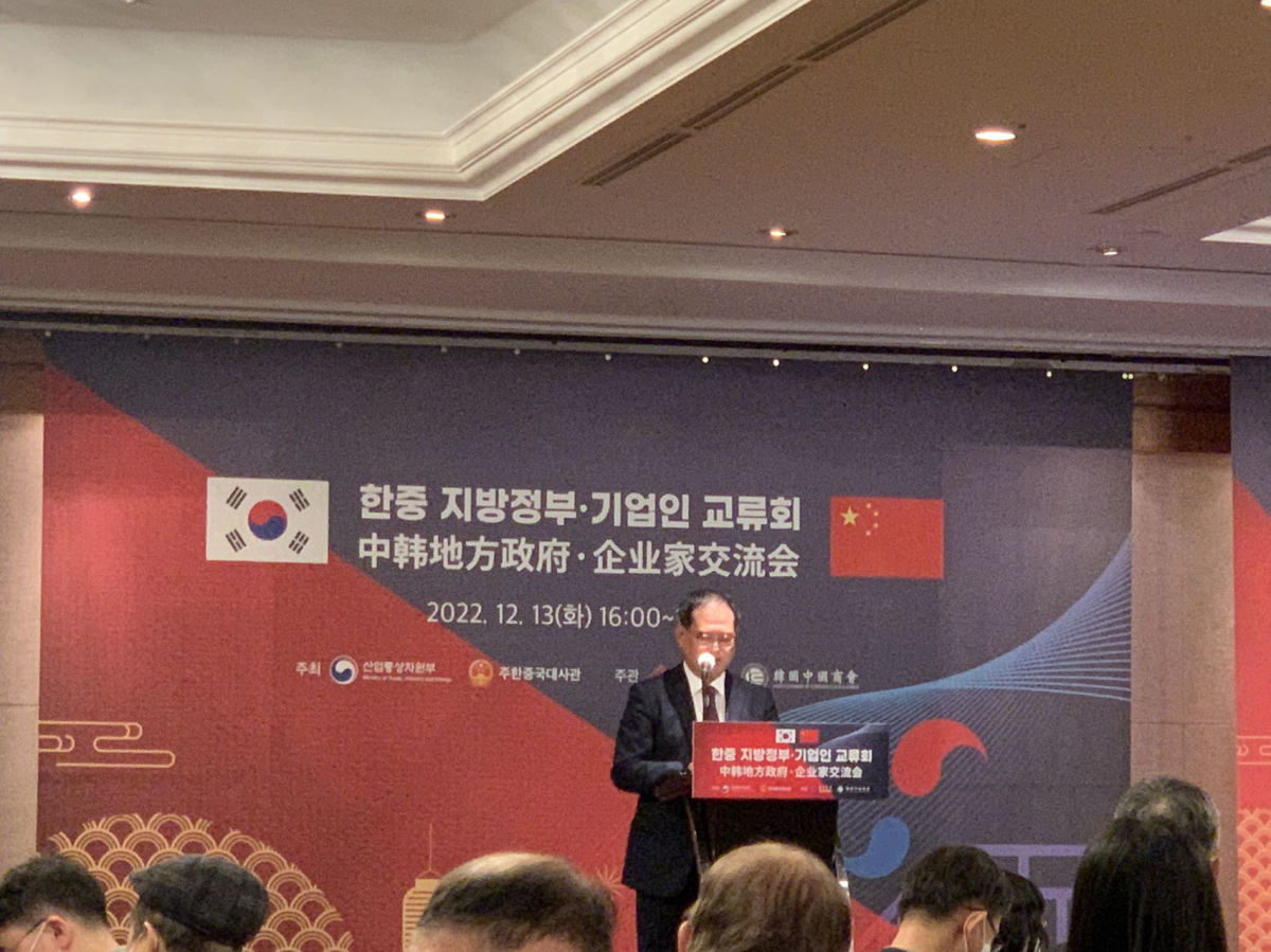 韩中地方政府及企业家交流会由产业通商资源部、中国驻韩大使馆、韩国国际贸易协会、韩国中国商会共同主办。