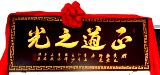 该牌匾题写出于著名书法家杨跃进先生赐予的墨宝,他写出了一颗真实的敬佩之心;宜章名师吴章顺师傅雕刻出心中的完美之情;出于感激之情,肖光金他们说:“还要请腰鼓队敲锣打鼓送牌匾”表达出他们对黄元勋老师的感谢赞扬、敬重之心!