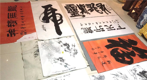 周桂禄书写“龙行天下”“龙马精神”。