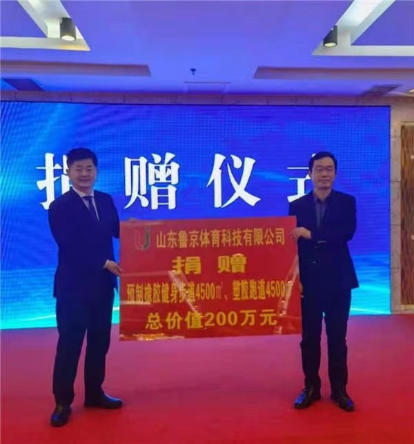 现场还举行了鲁京公司向禹城市慈善总会捐赠价值200万元的橡胶跑道仪式。