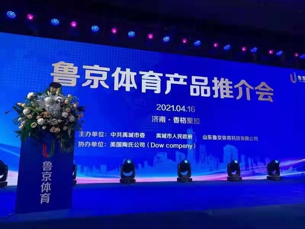 在随后举行的洽谈会暨鲁京体育产品推介会上,北京市企业发展促进会常务副会长兼秘书长李新志、美国陶氏化学公司亚太区技术总监孙刚、山东鲁京体育科技有限公司董事长解永秋先后致辞。