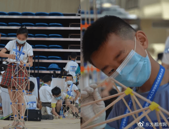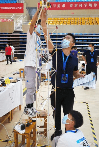 来自贵州遵义初中学校,搭建的创意天梯超过2米,成为全场焦点。而多所学校选手向承受重量挑战更高要求,勇于探索尝试精神令人赞叹。