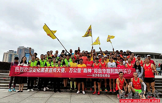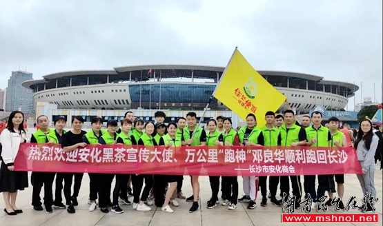 湖南民生在线讯(尹霞娟 记者 吴俊怡)10月10日下午,长沙市安化商会在长沙贺龙体育广场举行“安化黑茶宣传大使、万公里‘跑神’邓良华凯旋归来”欢迎仪式。羽毛球世界冠军龚睿那、黄穗特邀出席。长沙市安化商会执行会长夏晓辉、副会长王心亮、新闻顾问吴明德、秘书长姚艳,理事尹玖、黄晓芳,湖南久圣酒业有限公司总经理黄承志及商会部分会员代表等参加活动。