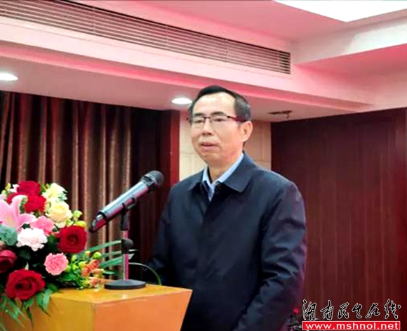 ▲湖南省茶叶学会理事长、湖南农大教授肖力争先生作就职演讲