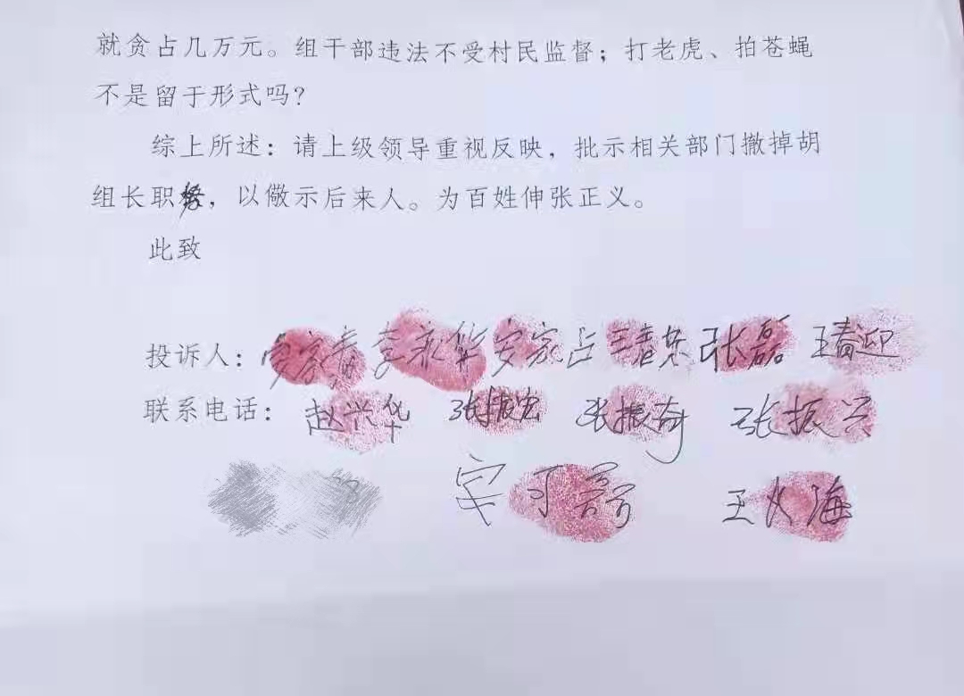 综上所述,我们反映的问题全部属实,请相关部门领导重视反映,调查落实,免掉该组长的职务,追究安棚镇安棚村六组组长贪占的法律责任,并追究个别办案人员有案不查,压案不立的责任!为维护国家集体财产不被侵占,确保地方稳定,请纪委监委部门重视反映!