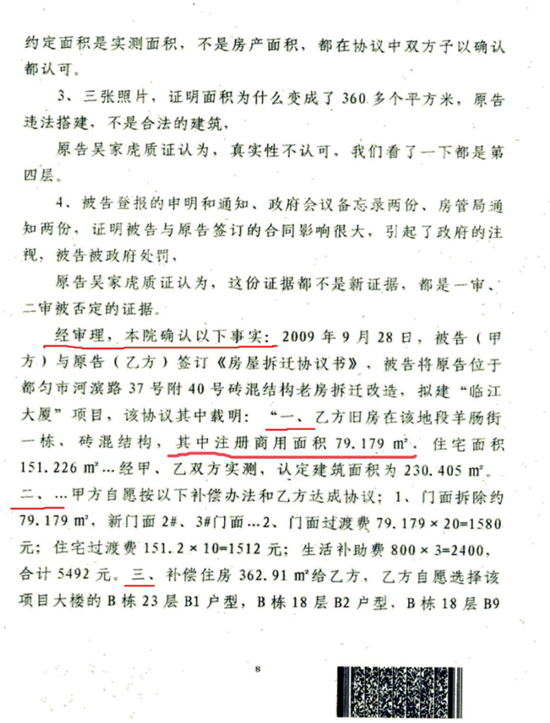 面纱7、 原地新建的楼房销售价每平方米只是5000元,法官判决环宇房地产公司补偿吴家虎产权证面积158.97平方米得到346万人民币,相当于每平方米得到2万多元的补偿。