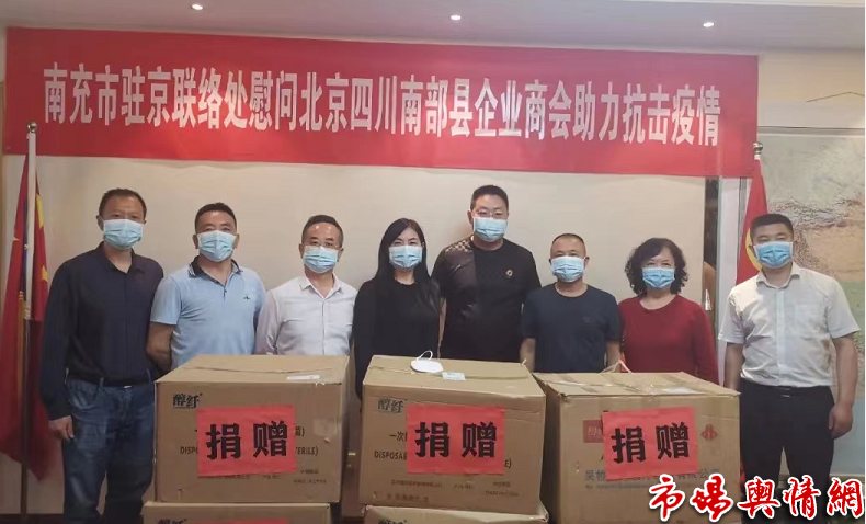 本网讯(融媒记者/秦明观) 5月21日,四川省南充市驻京联络处副主任杨小玉、赵和民等一行四人,来到北京四川南部县企业商会走访慰问,并捐赠防疫物资。
