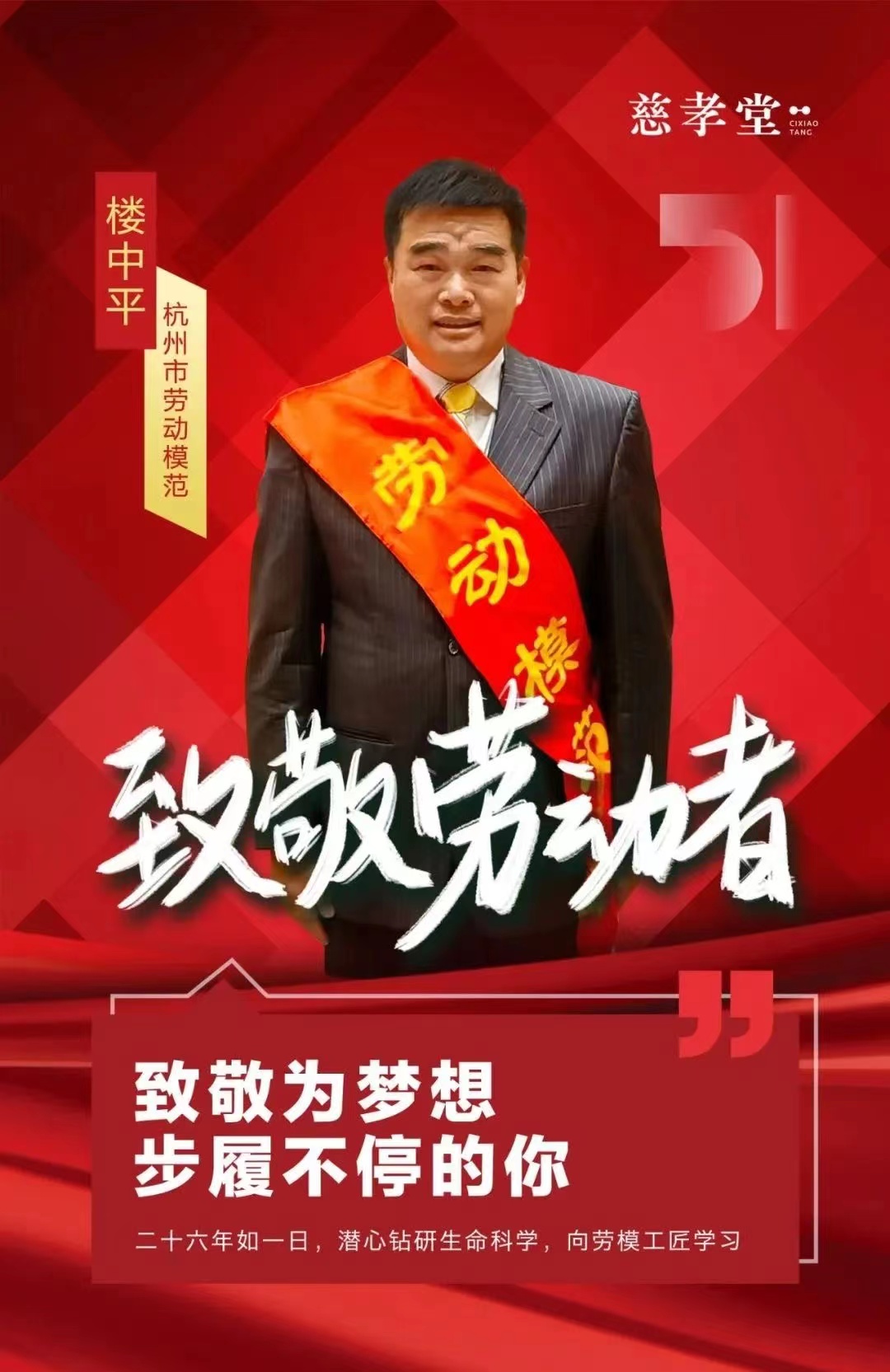康养村舍健康生态,城乡“共富”,雀山岭村的好山好水为康养产业的发展提供了一片天然的‘沃土’。慈孝堂仙岩山康养村舍通过乡村资源的盘活,乡村与城市实现良性互补和互动,让绿水青山真正成为金山银山。 回顾2022年“五一”国际劳动节,慈孝堂科技有限公司董事长楼中平荣获“2022年杭州市劳动模范”称号!