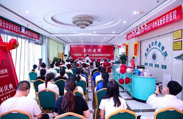 郑州友好肝胆医院李新月院长、医生代表于庆霞院长、护理部代表周燕主任、医生助理代表鲜瑷辉、功能科室代表张丽萍、药房代表夏广民等领导出席活动并致辞,医院医护人员、患者等近百人参加活动,共同见证了院庆典礼暨公益活动的盛大启动。