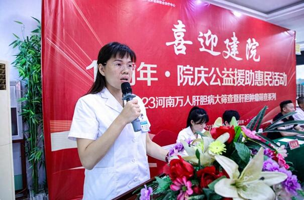 在致辞中于庆霞院长表示,我国是乙肝大国,有将近9000万的慢性乙型肝炎感染者,是全球肝病负担最高的国家,慢性乙型肝炎对于整个社会来说仍然是一个严峻的公共健康卫生问题。郑州友好肝胆医院作为河南省专业诊治肝胆病医院,将继续弘扬“精、谨、勤、敬、仁”的精神,坚持“以人为本,以病人为中心”的宗旨,以尖端的技术救治病人,以诚挚的爱心感动病人。