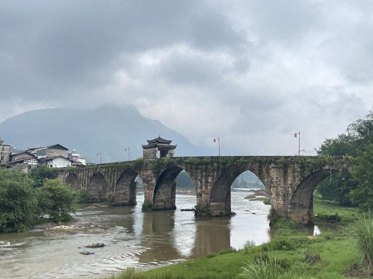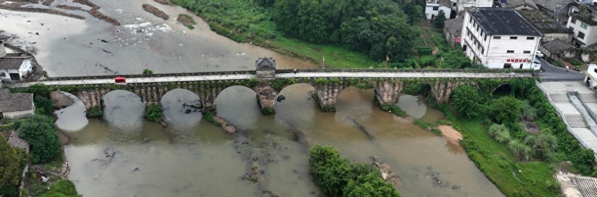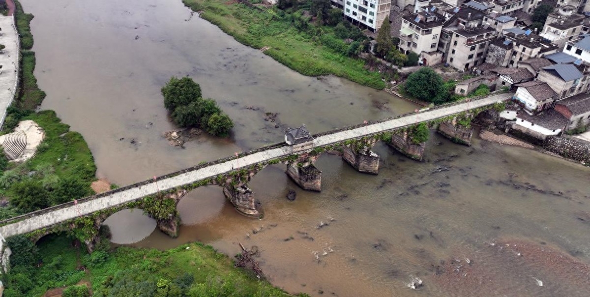 位于上饶铅山县永平镇的大义桥,始建于唐贞元间(785—804年),为木质结构。宋绍熙三年(1192年)重修,因鹅湖峰顶寺高僧大义禅师所创建,得名“大义桥”,以后又多次坍圮。清乾隆六年(1741年),大义桥被毁于火,重建时以石易木,成为石拱桥。如今的大义桥由桥基、桥梁、桥亭三部分组成,桥身自下而上全部为麻石砌成,整座桥全长193米,宽6米,高10米,八墩九孔,造型古朴,结构坚实。