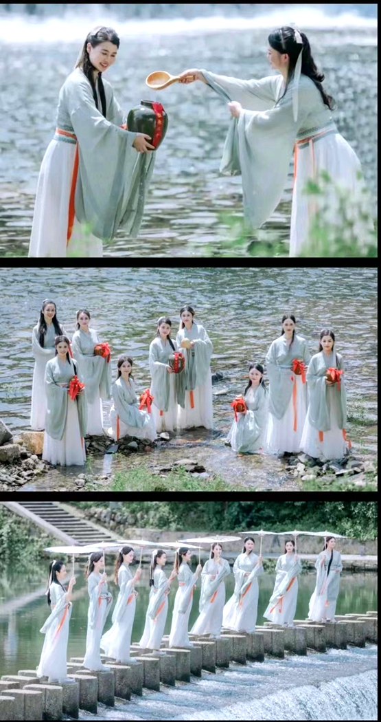 胡国安董事长带领管理团队及9位绿韵仙子款款而行、踏水而来