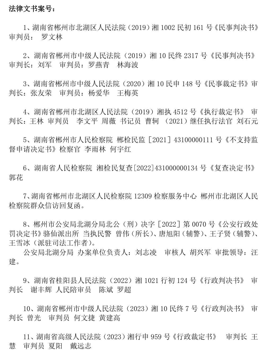 1、提交的与本案发生有直接因果关系的,1-5、7-12、17-23号,用以证明因北湖区法院执行审判长王林、法官刘石元暗中“解查封”我诉讼保全房产,违法“终本”后又拒不恢复执行,导致我巨额经济损失,并长期依法维权不能,又一直隐瞒“解查封”的事实,致我申请续查封不能,反被联手以“不满意法院判决、不执行法院决定…,严重扰乱单位秩序”、“锁喉伤命、殴打施暴”陷害,