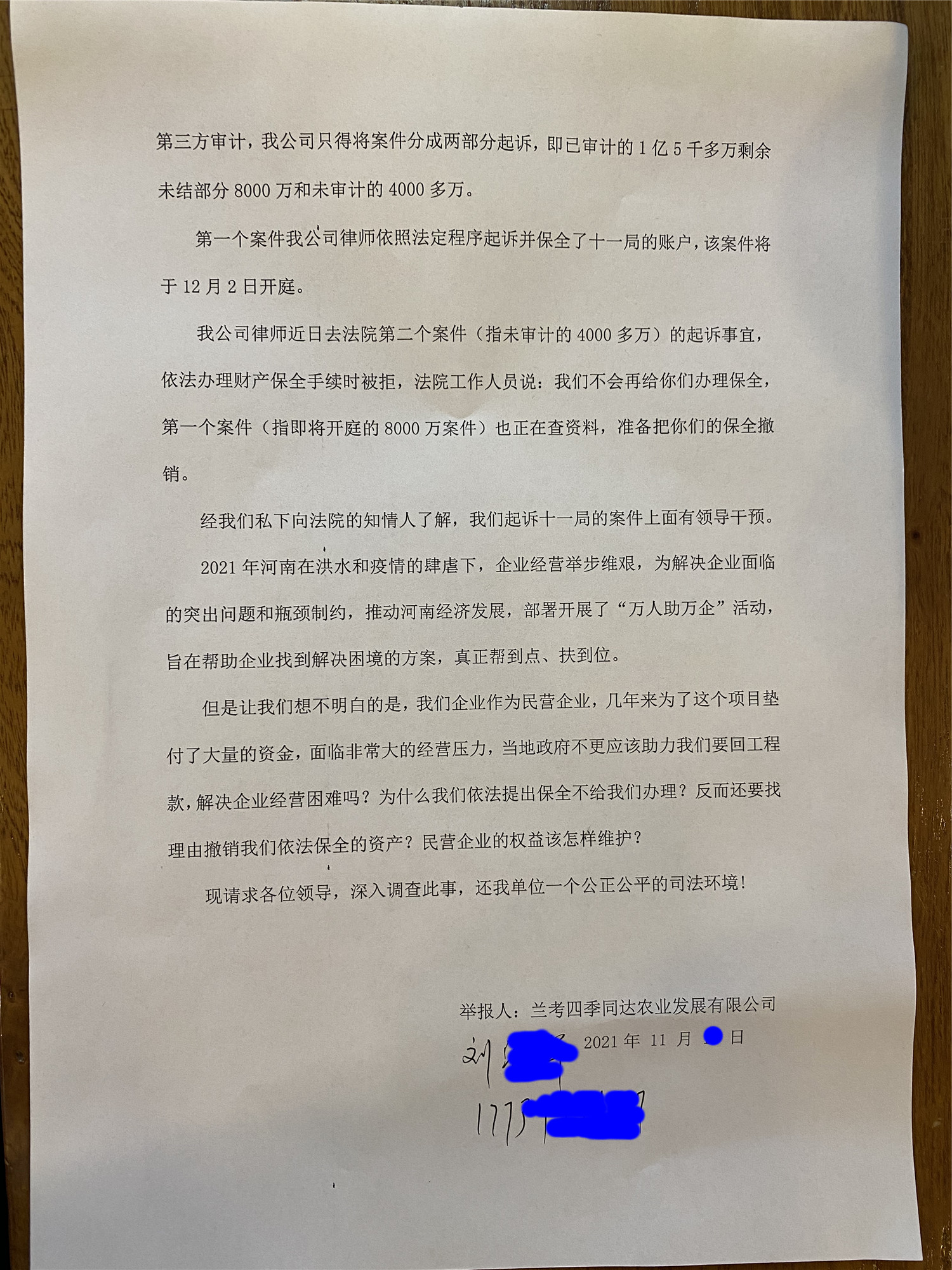 现请求各位领导,深入调查此事,还我单位一个公正公平的司法环境!