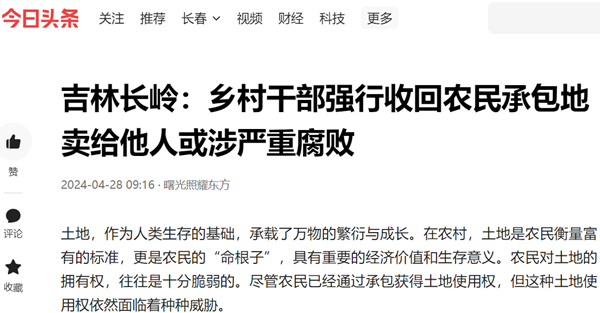 相关文章:吉林长岭:农民承包地被强行收回卖给他人官方回复引来更多质疑