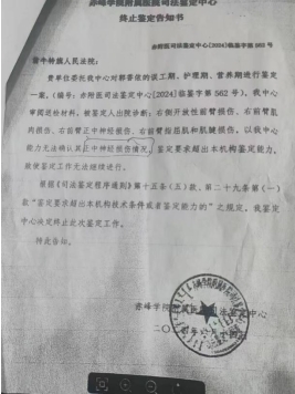 正中神经损伤情况,鉴定要求超出本机构鉴定能力的终止鉴定告知书
