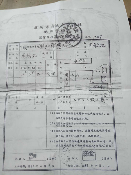 今年8月20日听说了渔行要拆迁,官方未公示,喜忧参半。喜的是政府终于开始建设城北,改变迎江桥南批发市场和桥北数十年来难通行的现象,忧的是没有公示拆迁有关的事宜。8月22日,社区书记秦某红打电话给我说:“你家要拆迁,要回来测量。”我正好不在海陵区,于是就答复改天,并约好8月23日下午4点左右测量。到了2点多钟,来了十几个人,有的有牌的,有的无牌的工作人员测量。测量结束,叫签字确认,我们写了以最终测量为准,证明初次测量,没有对接。8月24日,叫我们去拆迁现场办公室谈。工作人员叫签字,我问价格,他说先签掉,没有任何答复,也没谈,然后就说我们不签全部算违章,扒掉。我问他们依据哪一年的?我说我有手续,叫他们把文件查好,拆错了要负责的,然后不了了之。