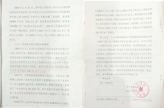 刘昌见告诉本网记者,西南水泥公司(原东方水泥厂)租地情况十分复杂。主要表现为:用地面积与村社的实际面积相去甚远。更让人难以置信的是,官方公布的梯形面积比平面积小100多亩(四川属丘陵地区,梯形面积与平行面积的差距很大),当地职能部门还公然称:是专业机构测绘的,是真实有效、受法律保护的,反而以“刘昌见及兴隆街镇三皇庙村六组村民在原地质地貌发生改变后,自发组织对土地进行丈量不符合《中华人民共和国测绘法》及相关地籍测绘专业标准,且丈量结果与具有资质的专业测绘机构测绘的结果有明显差异,证实刘昌见反映的情况不属实。”