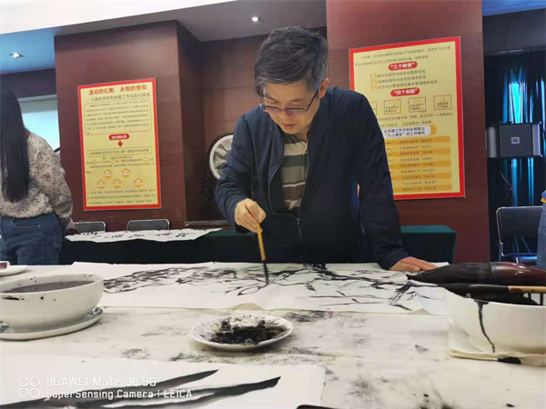 活动现场艺术创作氛围十分浓厚,艺术家们以笔代言,以纸为媒,以画寓意,创作出一幅幅精美的书画作品,用自己的方式歌颂党的辉煌成就,描绘对国家的热爱之情。山水画情趣盎然,展现了祖国的大好河山;花鸟画赋彩鲜明,寓意了新时代生活的勃勃生机;书法作品笔力遒劲、气势磅礴、笔酣墨饱。老师们各展所长,既体现了书画的高雅情趣,又表达了敬党爱党的真挚情怀。同时也为基层送来文化艺术这一精神食粮。